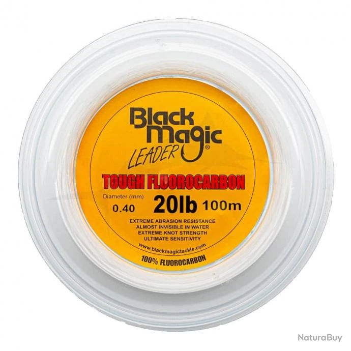 100% Fluorocarbone. Excellente résistance aux noeuds. Résistance supérieure à l’abrasion.