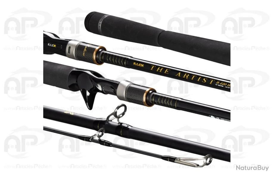 La THE ARTIST B 220 H + Angel of Darkness a été spécifiquement développée pour les inconditionnels des pêches de brochets et de gros black-bass au ‘swimbait’. Sa longueur de 2,20m, son action rapide, sa puissance et sa résonnance permettent d’exceller dans l’art des pêches précises et fortes en bateau, en float tube ou du bord à l’aide de Soft swimbaits (Dunkle 5 et 7), de Hard Swimbaits (Blast Bone Clicker 190 SF, Dowzswimmer 180 SF, Gantia 180, Freddy 170 CW) et leurres souples : Dexter Shad (175 et 200), Dexter Eel 210, Magic Slim Shad 7, Magic Fat Shad 7, Nitro Shad (120 et 150). Nous vous recommandons cette canne les yeux fermés pour des pêches de prospection rapide à l’aide du Crusher 35g ou du Crazy Crusher en 14 ou 21g associés aux Dexter Shad ou Eel 150 mais également pour conduire un Dexter Jerk 120 de façon optimale. Elle est constituée du fameux blank X5 très haut de gamme, qui adopte un procédé de nappe pré-imprégné comportant une orientation de fibre de carbone sous trois angles. Cette The Artist gagne en légèreté, résonance et en puissance pour un plaisir et une efficacité décuplée. Elle est montée à partir de la série d’anneaux Fuji Torzite Titanium « K ». Plus fins et plus légers, afin de parfaire la transmission de l’information vers le blank, pour optimiser les distances de lancers et la durée de vie de votre ligne, d’éradiquer tout risque d’emmêlement de votre ligne dans les anneaux lors des lancers, quelles que soient les conditions rencontrées. Elle est livrée avec une housse sérigraphiée et un tube rigide de protection en cordura.