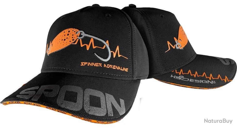 Visière : Spoon texte imprimé et ligne « adrénaline » et logo Hotspot Design brodé, sandwich de couleur contrastée avec logo Hotspot Design imprimé sur toute la longueur.
