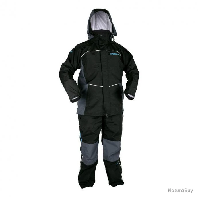 Cela permet de conserver une bonne mobilité une fois débout ainsi qu’une bonne liberté de mouvement en cours de pêche. Les pognées en néoprène et les attaches au niveau des manches permettent de bien ajuster au niveau du poignet. La capuche détachable possède un cordon ajustable et la veste est équipées de 4 poches refermables et d’une sangle au niveau de la taille. La salopette possède deux poches qui se referment et une sangle réglable. La zone située au niveau des genoux est renforcée évitant une usure prématurée. L’ensemble Cresta All Weather Suit peut se porter à n’importe quelle saison et elle est disponible dans les tailles suivantes : M, L, XL, XXL and XXXL.