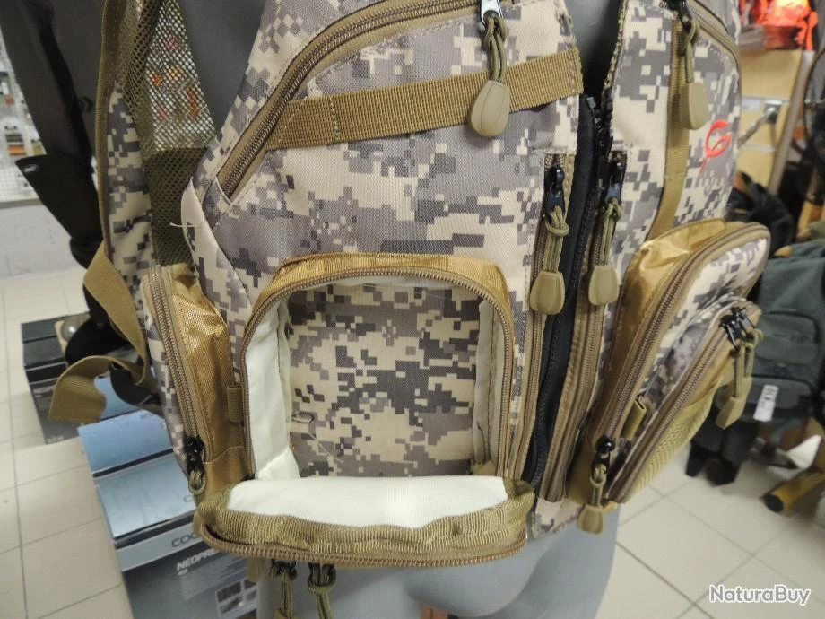 Gilet de pêche très pratique et résistant. Il est équipé de nombreuses poches dont :