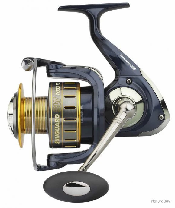 Les moulinets SUNSET SUNGUARD SW FD sont munis d’un corps et d’un rotor en ABS, d’un frein avant micrométrique, de trois roulements à billes, d’une bobine ajourée en aluminium, d’une bobine supplémentaire en ABS, d’un anti-retour Infinite Stop System I.S.S, d’un galet surdimensionné afin de réduire le vrillage au maximum, d’une manivelle de combat ambidextre en aluminium et d’une poignée caoutchoutée.