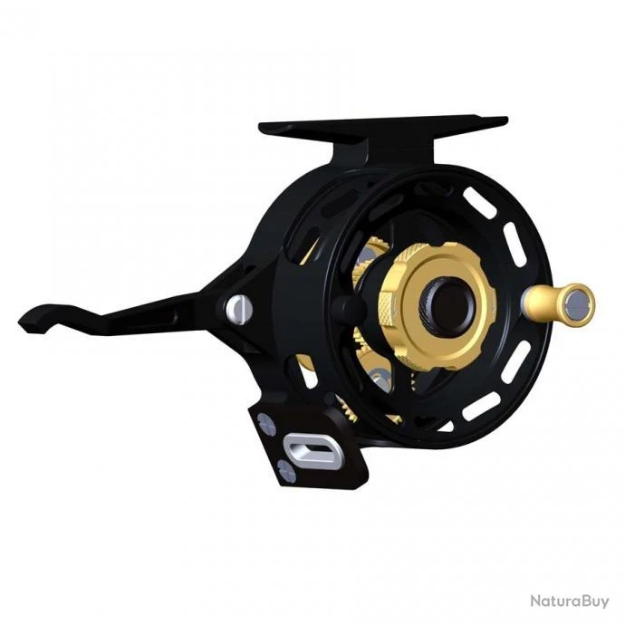 La bobine s’équipe aussi d’une poignée (avec à l’opposé son contrepoids) ceci pour vous permettre de ramener manuellement le fil en cas de combat avec un poisson ou si vous avez par maladresse cassé la gâchette.